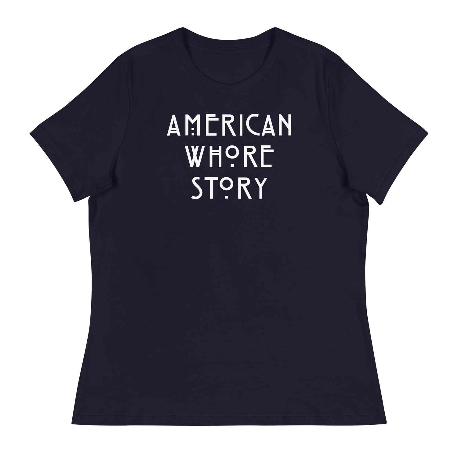 American Whore Story (Women's Relaxed T-Shirt) - Navy / S is backordered and will ship as soon as it is back in stock.